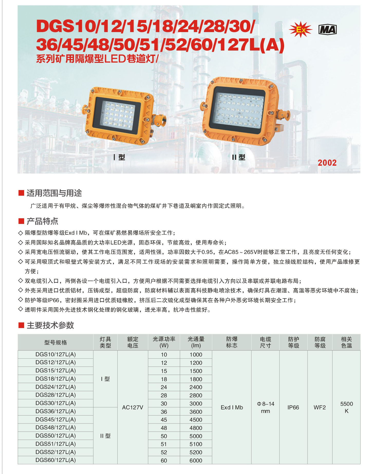 DGS24/36/48/127L(A) 礦用隔爆型LED巷道燈