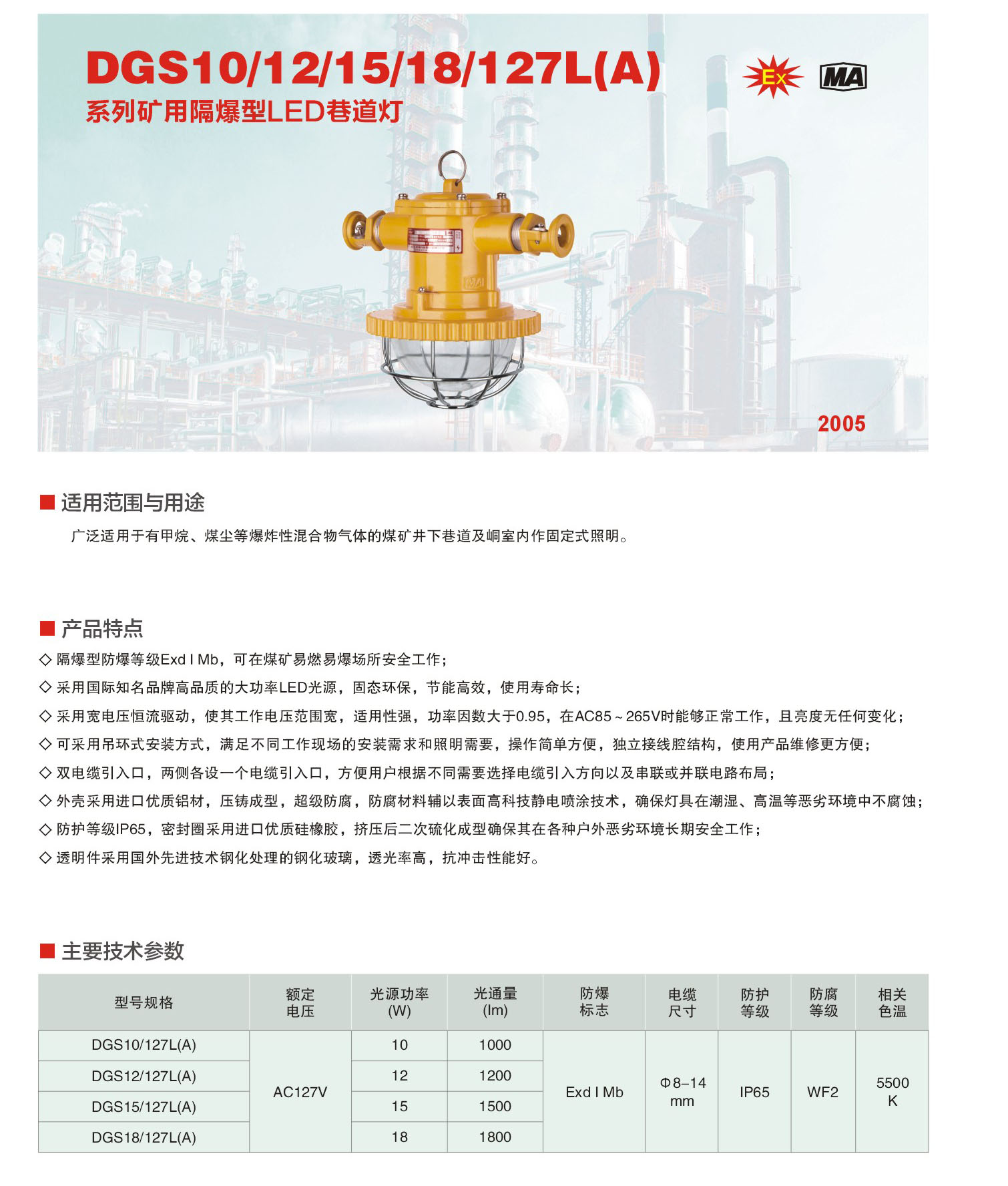 DGS24/28/30/36/40/45/48/50/51/52/60/127L(A)礦用隔爆型LED巷道燈