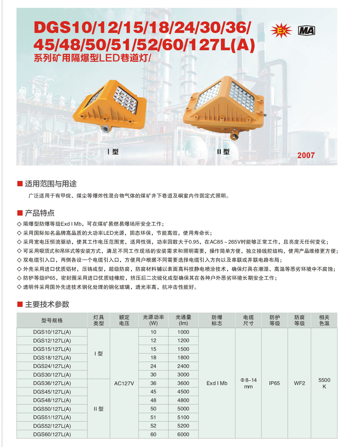 DGS24/36/48/127L(A) 礦用隔爆型LED巷道燈