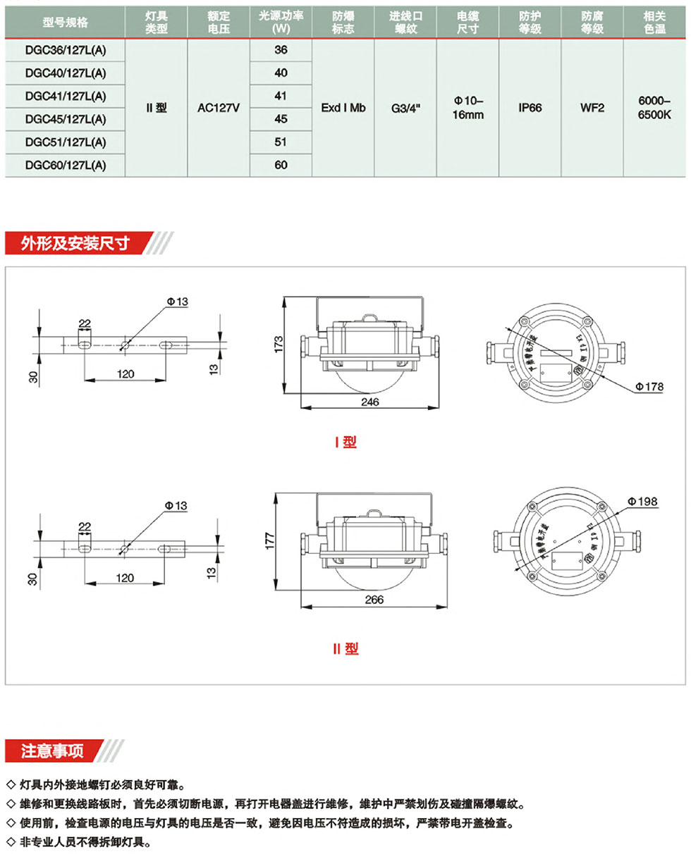 DGC22/24/36/48/127L(A)礦用隔爆型兼本質(zhì)安全型LED支架燈