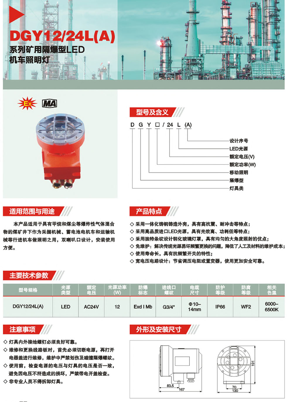 DGY9/12/36/36L/24/127L(A)礦用隔爆型LED機車照明燈
