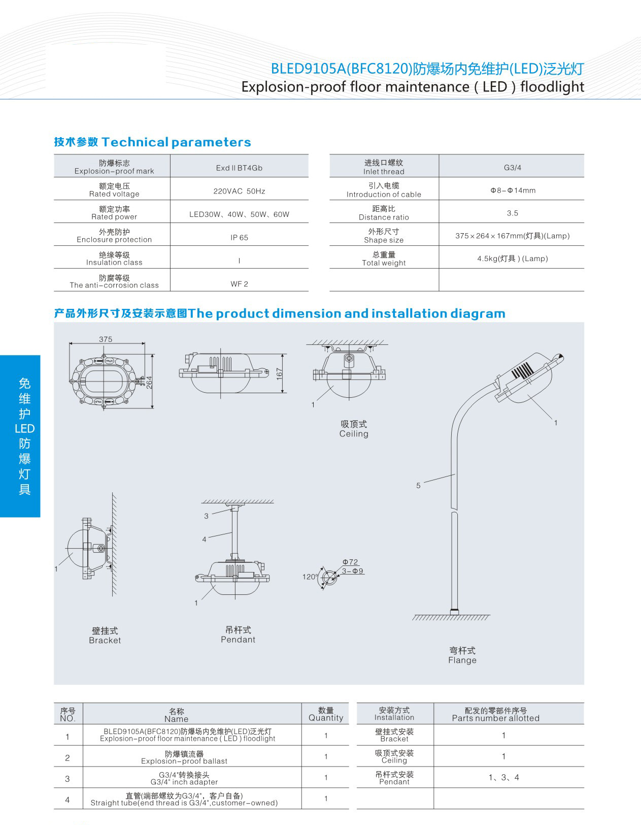 BLED9105A(BFC8120)防爆場內免維護(LED)泛光燈、一體式馬路燈
