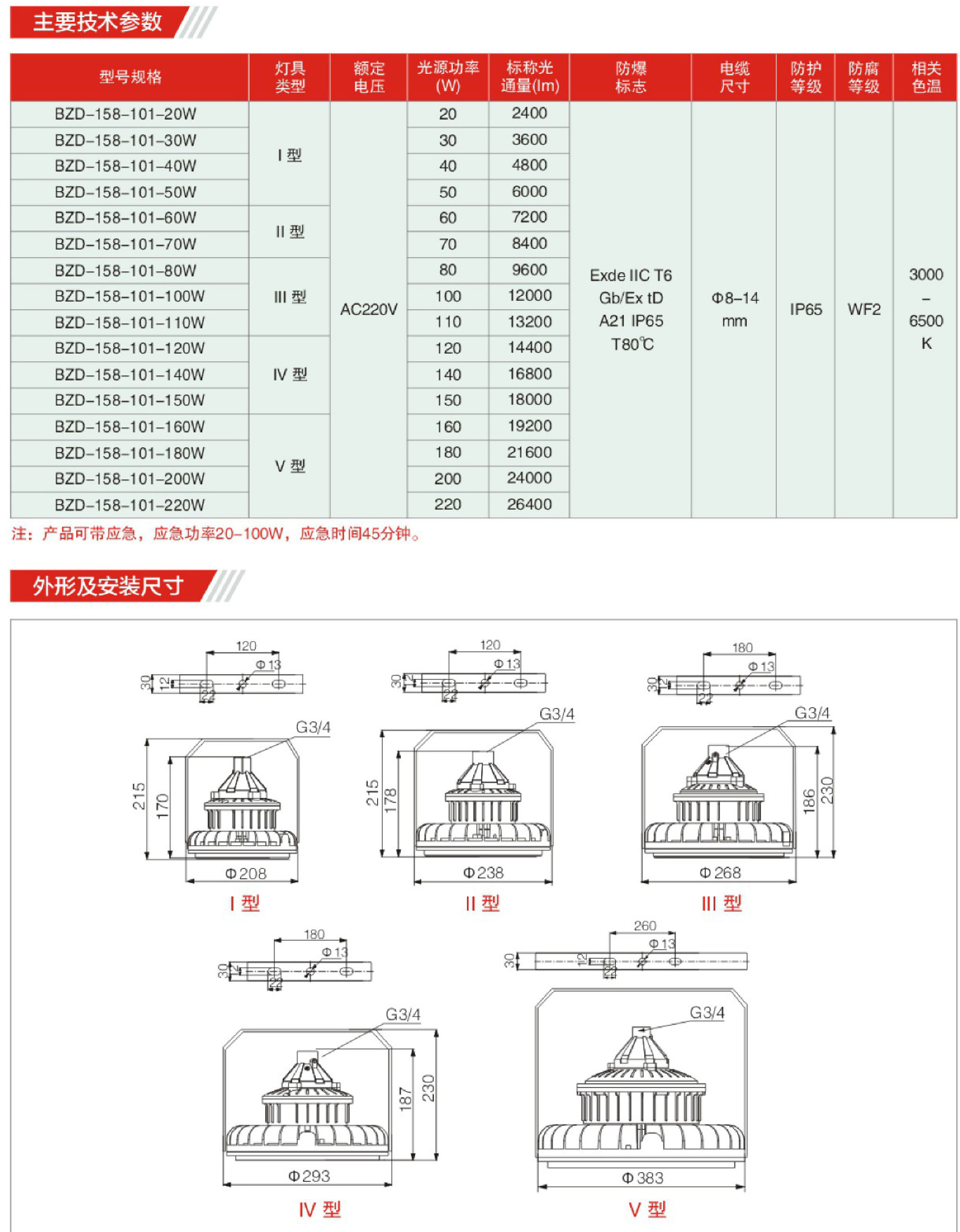 20/50/70/80/100/120/150/200/220W防爆免維護LED照明燈